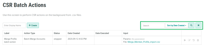 Click the Search icon. The screen is refreshed to show only the Batch Actions that meet your search criteria. If you entered multiple search criteria, the Batch Action must meet ALL criteria.
