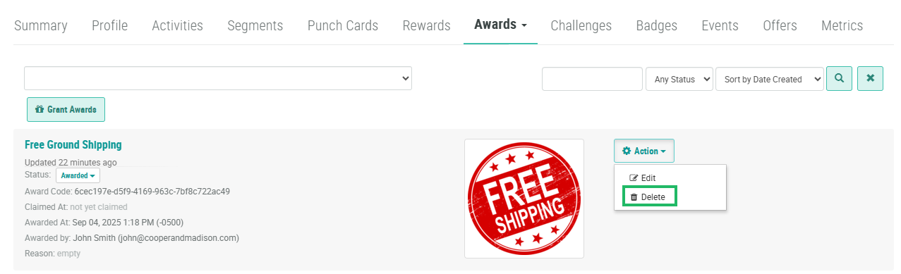Delete an Award