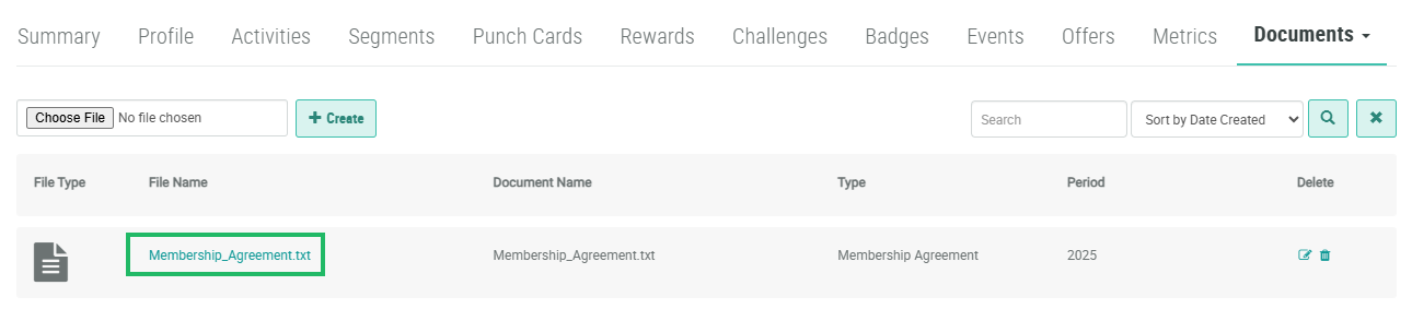 5. Click the name of the desired Document. The platform downloads the Document to your local PC.
