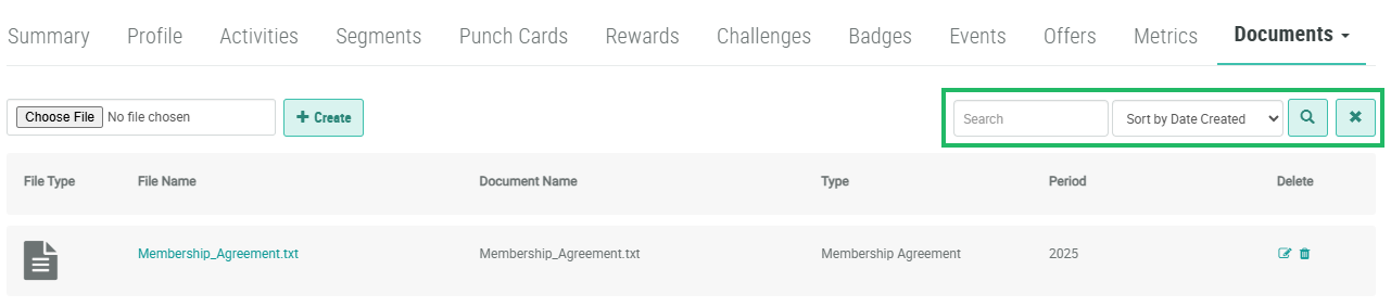 5. Click the Search icon. The screen is refreshed to show only the Documents that meet your search criteria. If you entered multiple search criteria, the Document must meet ALL criteria.