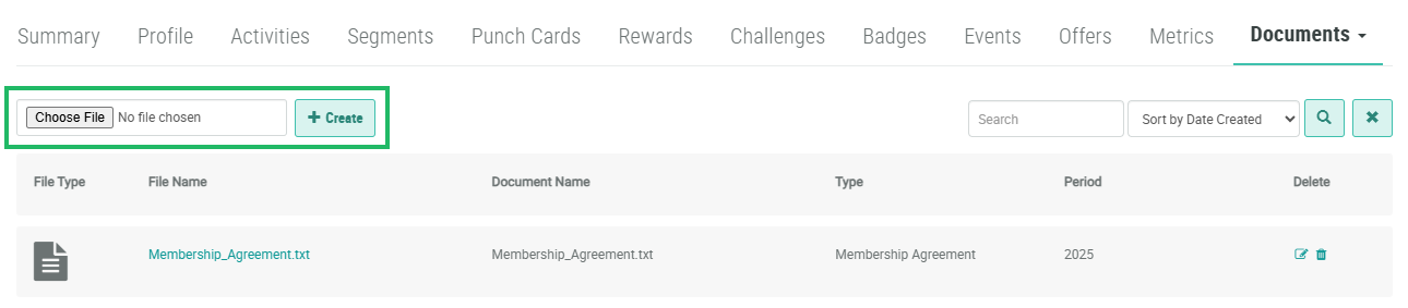 To upload a document or other file to a Member Profile: