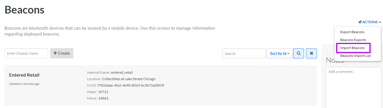 In addition to defining Beacons through the platform's user interface, you can import a file containing one or more Beacons.