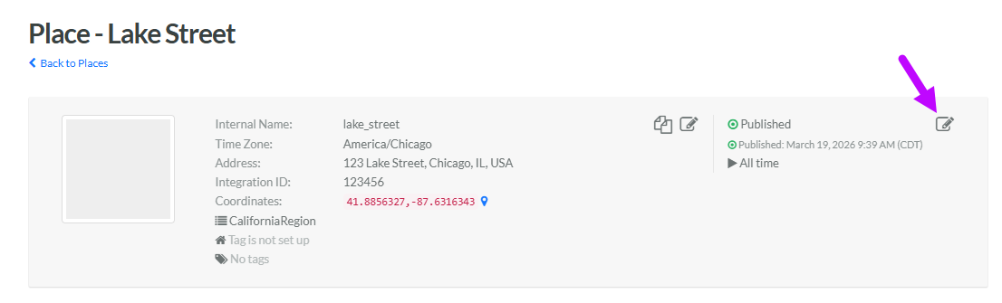 3. Within the header area of the screen, click the Edit icon in the top-right corner. The Edit Place pop-up window is displayed.