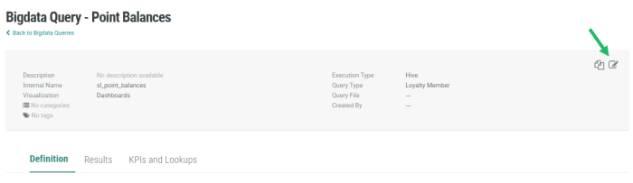 3. Within the header area, click the Edit icon. The Edit Bigdata Query pop-up window is displayed.