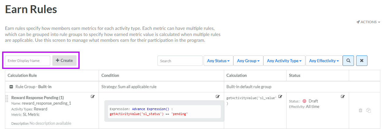 2. In the Display Name field, enter the name of the new Earn Rule.
