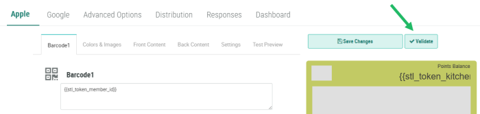 Above the Wallet Pass preview, click Validate. The Validate Wallet Pass pop-up window is displayed.