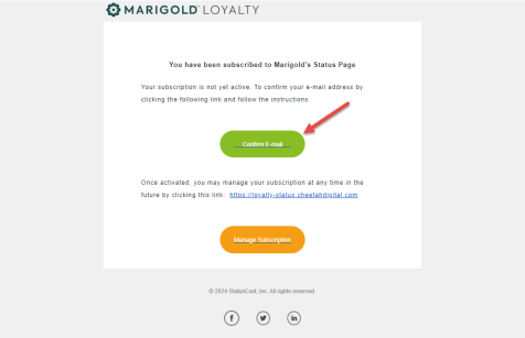 You will find a message entitled Activate your Zeta Global status page subscription with the message content as follows: