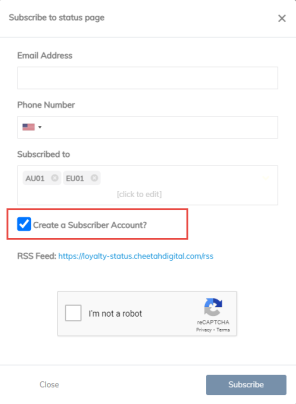 Check the box Create subscriber account to register you in the system as a subscriber, save your selections and give you easy access to update your subscriptions in the future.
