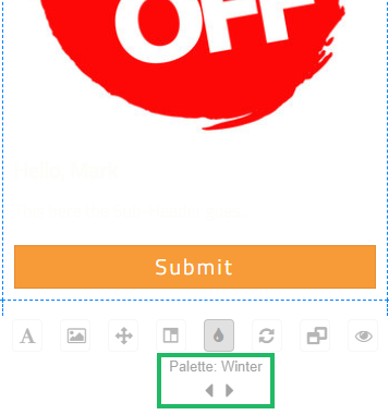 In the tool bar beneath the Master Content or a Layout, click the Color Palette icon. The platform displays a sub-menu, along with left- and right-arrows.