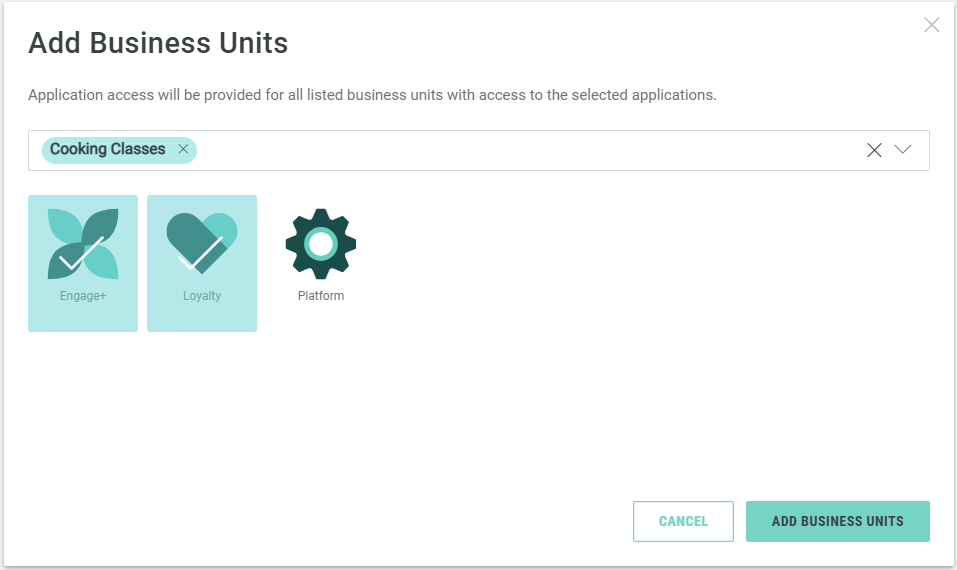 3. From the drop-down menu, select a Business Unit. Repeat this step to add additional Business Units.