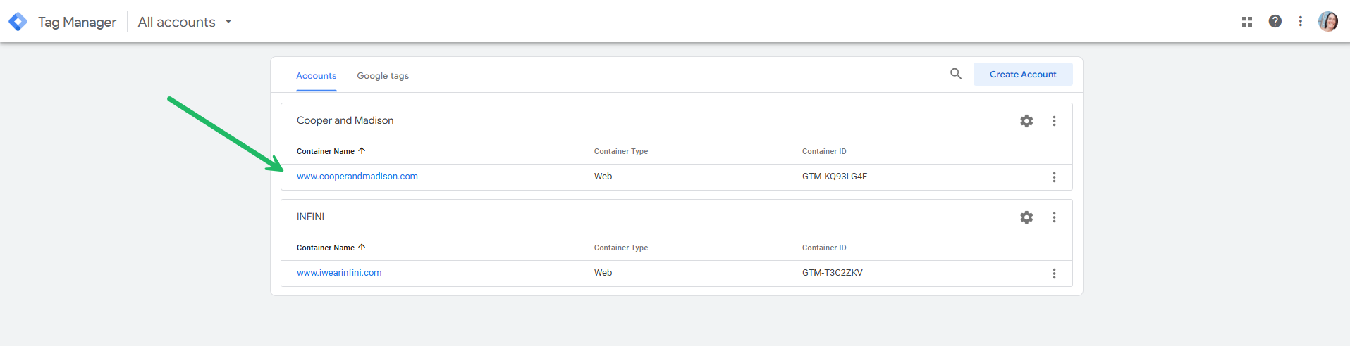 2. In Google Tag Manager(GTM), go to the Accounts overview and select your account.(https://tagmanager.google.com/#/home)