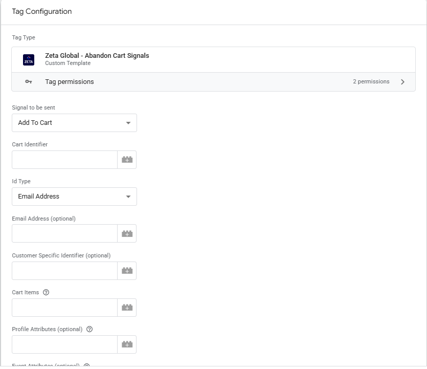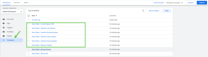 Zeta provides 6 different templates that can be uploaded to Google Tag Manager. These templates can then be used to create your tag definitions: