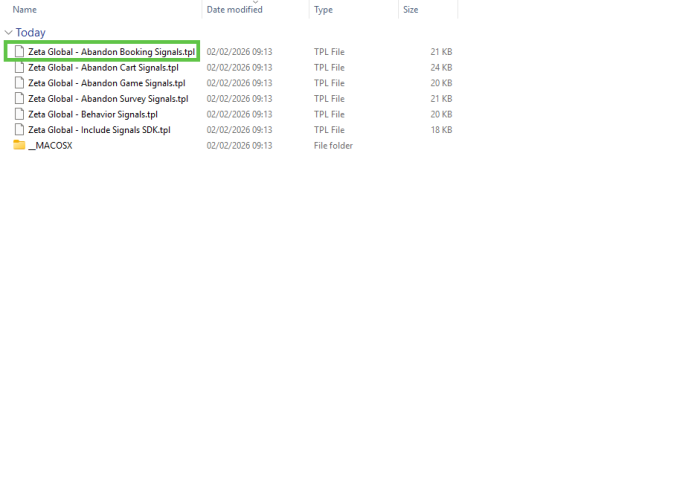 Zeta Global - Abandon Booking Signals.tpl is used to track bookings that have started but not completed. Upload this template if you want to track bookings;
