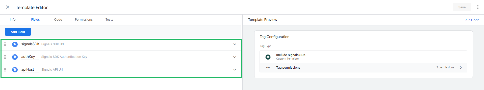 For example, for the Include Signals SDK the following fields are included: