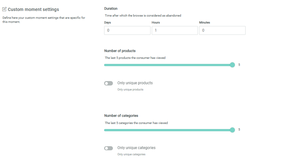 Number of products — The number of products last browsed that will be available in the Moment. This information can then be used for personalization and segmentation when taking action upon this Moment.