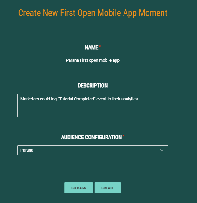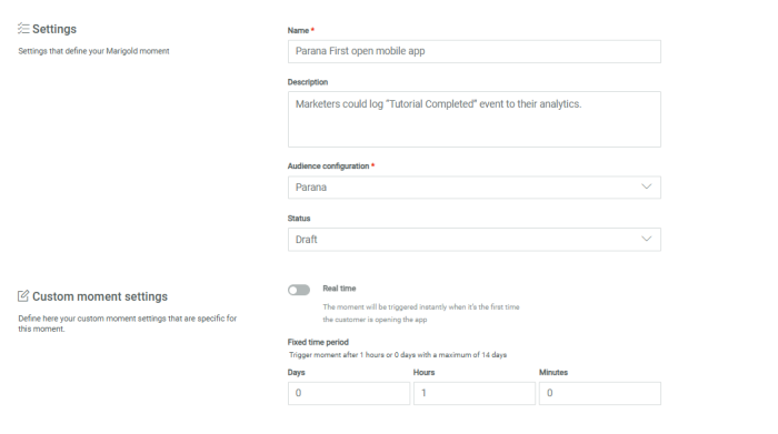 In the properties, fill out the name, description and select the Audience Configuration to apply to this Moment.![]()