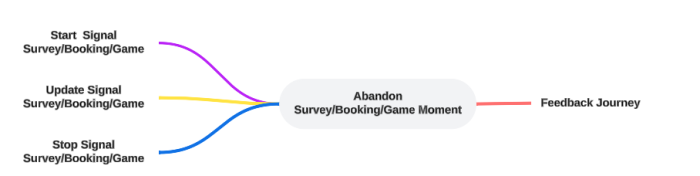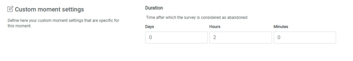 Example: At 14h, a customer starts a survey. An hour later the survey has not been completed yet and no updates have been made. The Survey Abandon Moment is triggered.