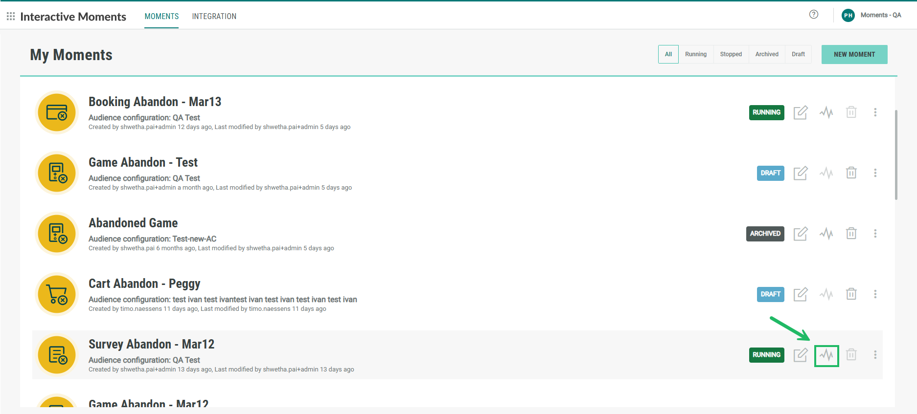 The reports can be accessed from the Moments overview page. Click the Report icon for the Moment for which you want to check the report: