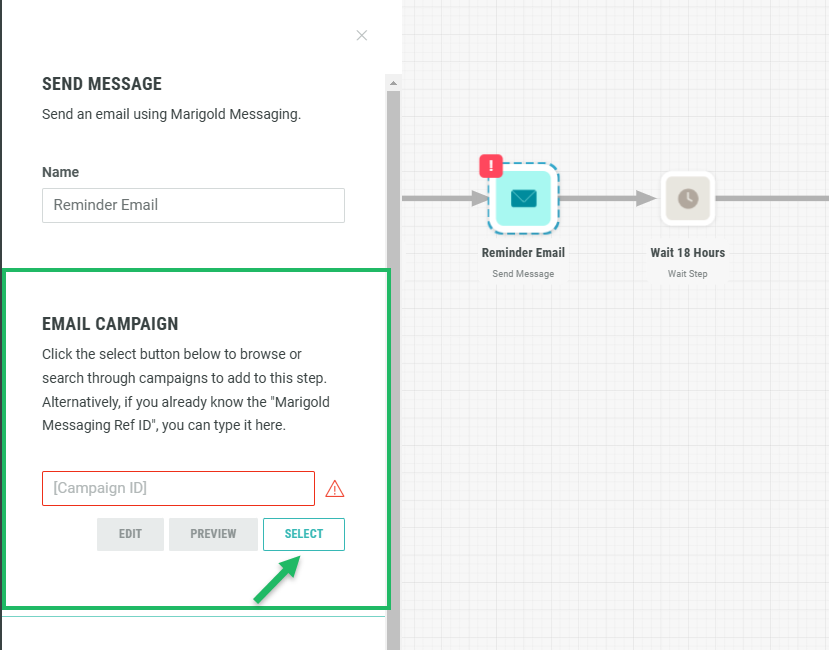 Step 4: In your Journey builder, select and configure the email campaigns to be sent out in the journey