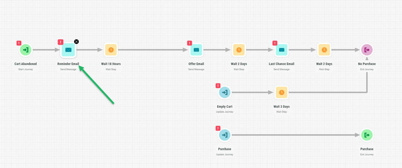 Once the Abandon Cart journey has been created and configured for launch when a Moment comes in, you must replace the messages in the journey with your own messages, created in step 2.