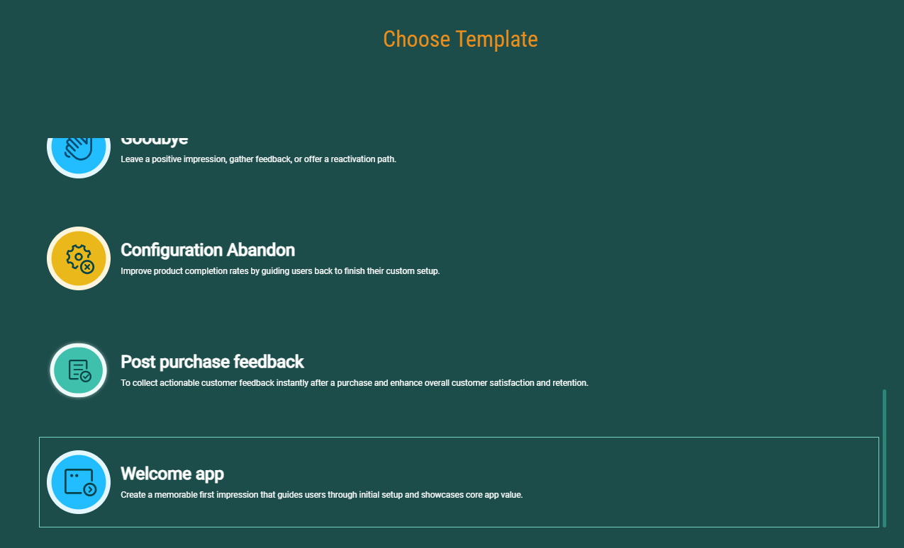 For the Welcome App use case, create a Moment in the Moments application, using the Welcome App template. The Moment is triggered when the customer installs the app, either immediately or after a set time.