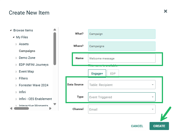 When the Welcome App Moment occurs, it needs to trigger a journey that sends out one or more communications to the visitor. These communications need to be designed first.