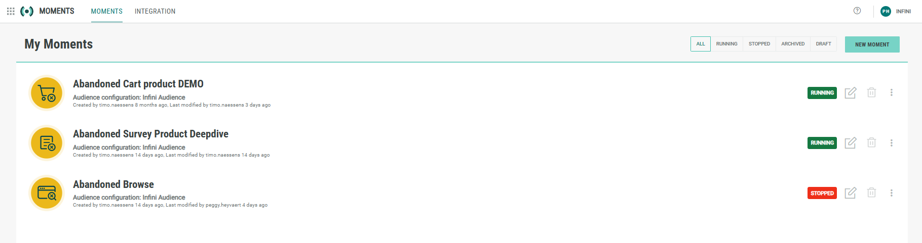 These signals are then interpreted by the Moments application and translated into a specific moment in the visitor’s lifecycle. Moment templates are available to help you set the rules for these moments and define when exactly a Moment occurs. Abandonment Moment templates now available with Cheetah Digital Journeys include: