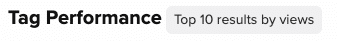 When a tag filter is selected the Tag performance table will provide the top performing tag at the top of the table, followed by the nine highest performing tags that are also associated with the content items that are associated with the selected tags. When data is aggregated the Tag performance table provides the top performing tag per aggregation, such as the top performer every month for the previous year. The tag next to the table header will provide context for the data the table is displaying.