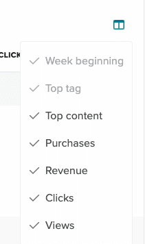 After you aggregate your data, those columns change. Using By week aggregation as an example, you'll see a new Week Beginning column before the Top Content.