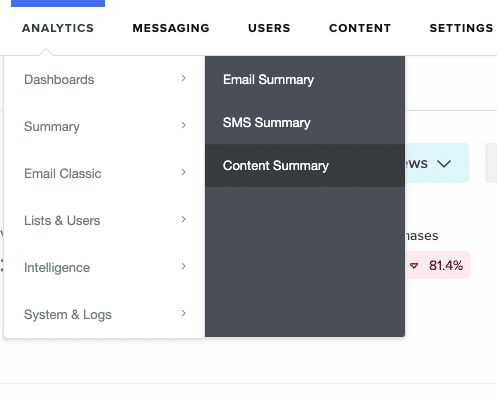 View aggregate data of your content and tag performance. Locate the Content Summary report in the Analytics menu, under Summary.