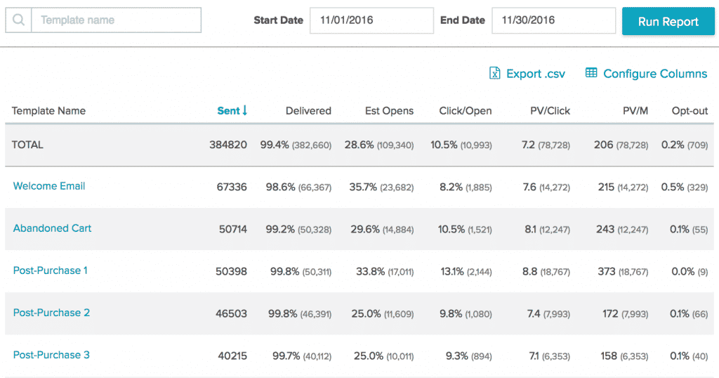 - Delivery Rates Report - Provides engagement-based reporting on triggered emails, such as Welcome or Abandoned Cart messages.
