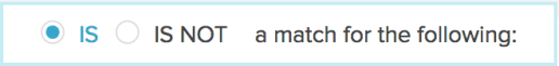 - You can add a "NOT" logical operator to a group or subgroup to exclude users who match the result of the group. Hover over the grouping bar, and click IS to change the operator to NOT.