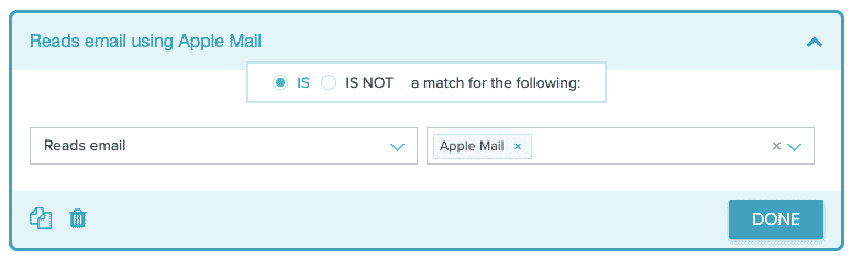 - From the Device, OS, & Browser drop down, search for or select Apple Mail. Your filter should resemble the following image: