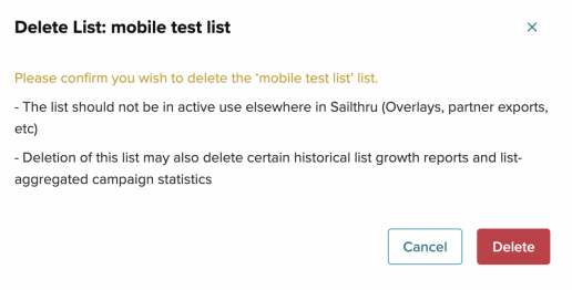 3. Depending on how many lists you're deleting and what they're used for in your account, you'll see one of a few different modal windows: