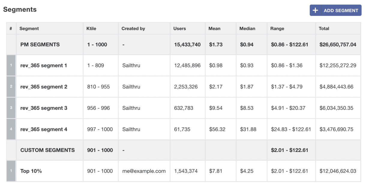 For each segment, the table also displays: