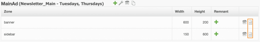 2. Within the campaign/template editor's Code tab, paste the invocation code for each ad zone.