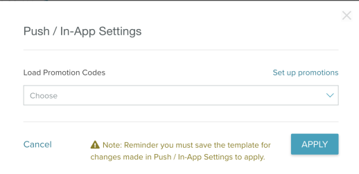 To use the promotion code in your messaging, use the following in your Title Text, Alert Text, deeplink, or custom key/value pairs: