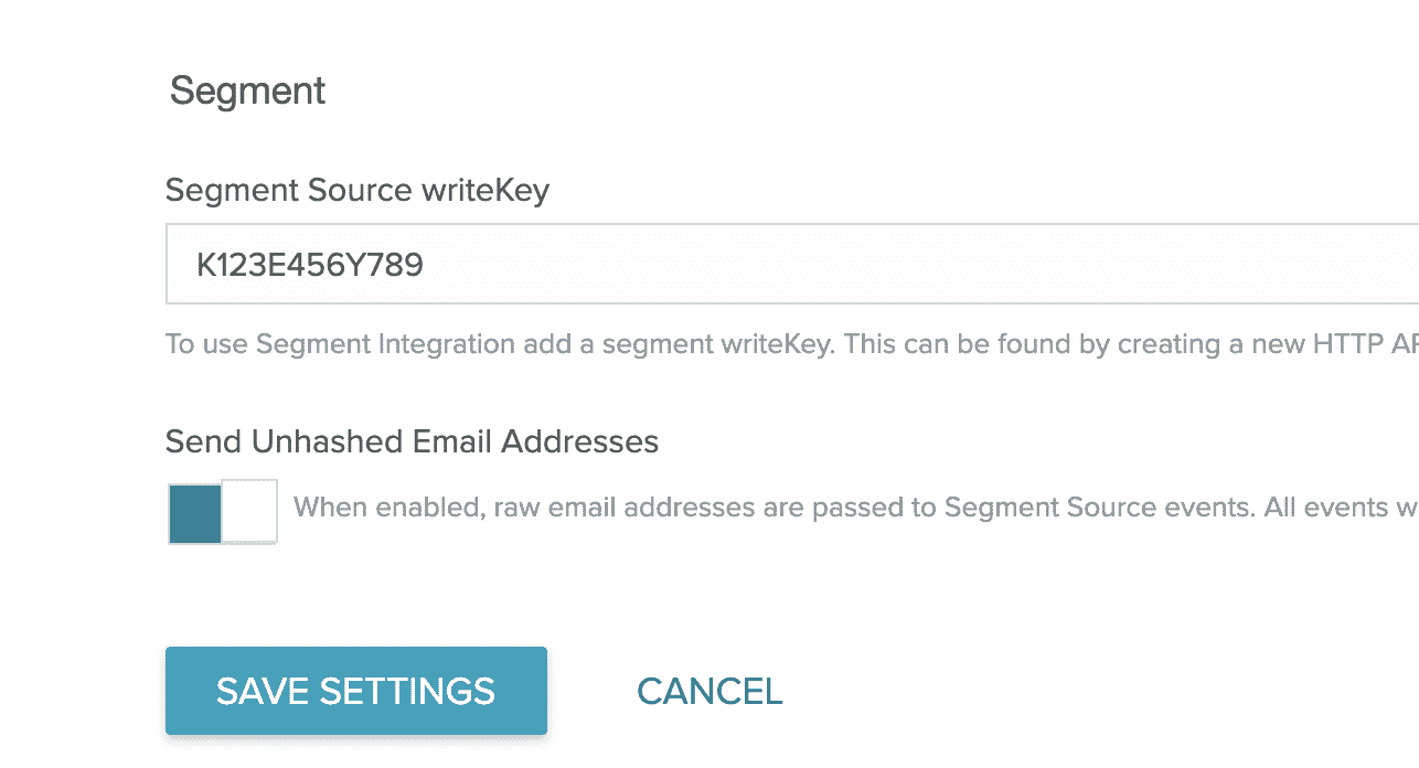 Name the source, add labels, and choose any destinations you'd like to connect to (you can do this later). Once completed, copy your Write Key and add it to My Sailthru Integration Settings. Note: Ask support to enable your account for EXTID support. This will be used to store Segment userId values on profiles.