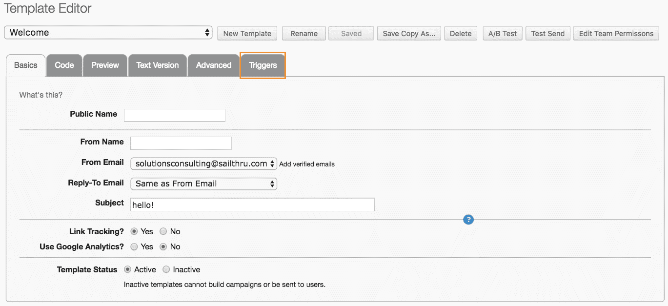 Note: Keep in mind that these Template Triggers are only used with triggered messages and cannot be used with campaign messages.