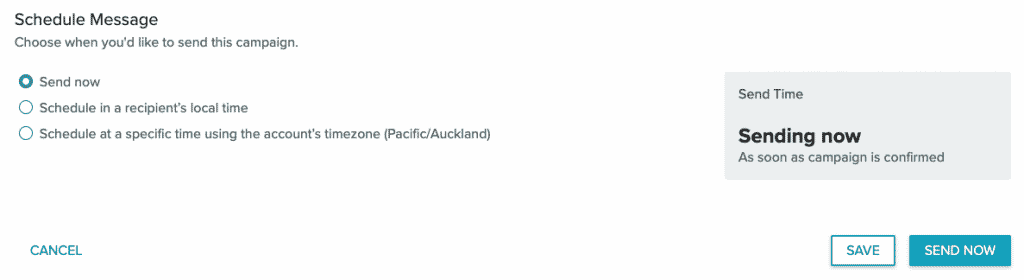 Selecting Send Now allows you to send your message as soon as you confirm it.