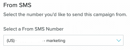 Use the From SMS drop down menu to select your From number. If there are multiple numbers enabled on your account, you'll be able to select one from the list.