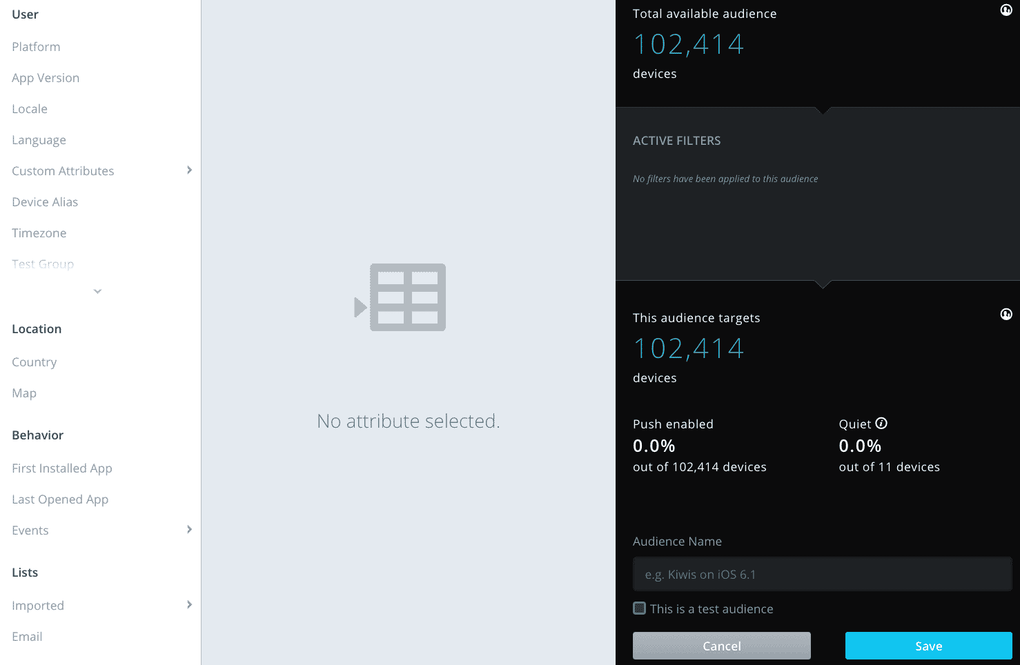Creating audiences based on user behaviors is a helpful to make messages specifically relevant to past actions of the user. For example, you can create an audience based on Last Opened App to regularly message with incentives, such as a sales or breaking news, to prompt these users to open the app.