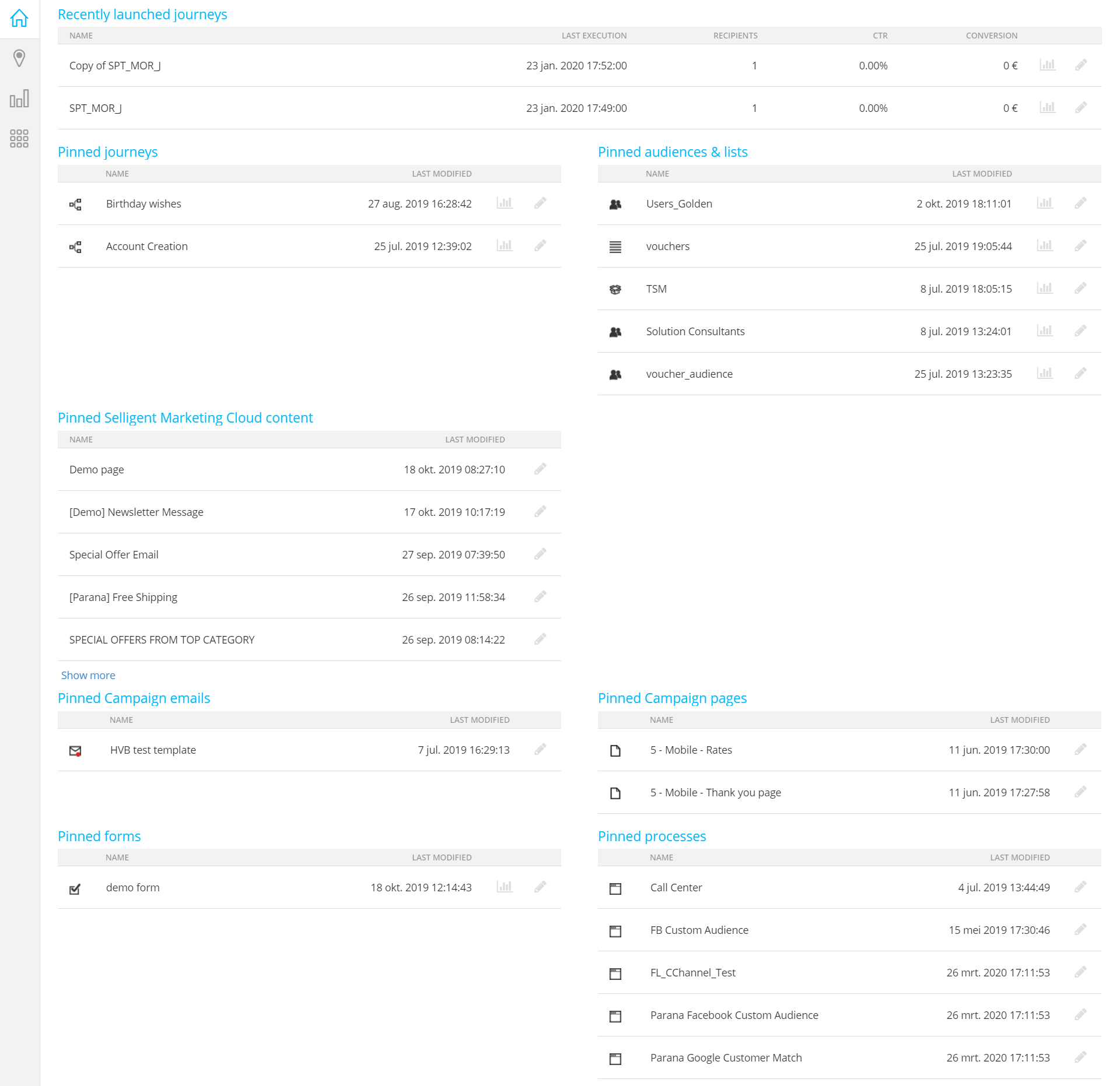 On the left, there is a navigation bar with entries to the following features: