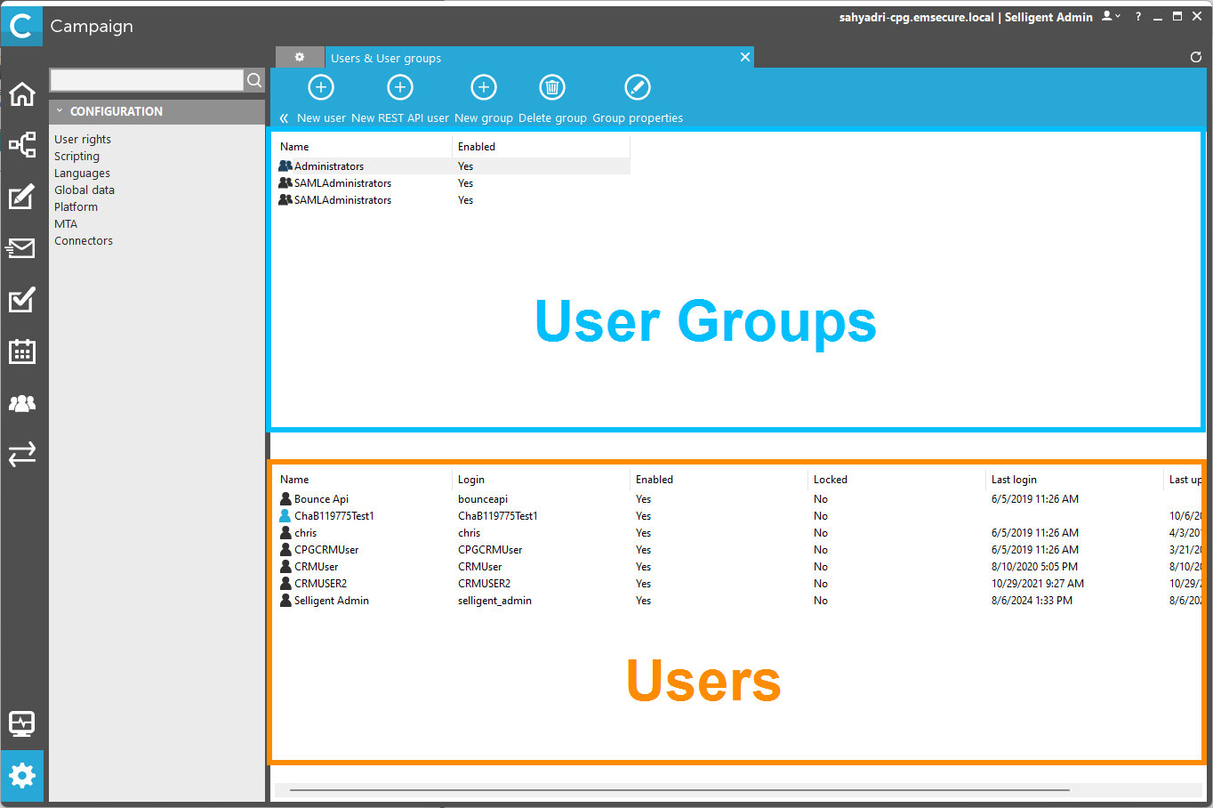 For Campaign-only users, meaning you don't have the Selligent solution at all, user configuration is fully done inside the Configuration section of Campaign.
