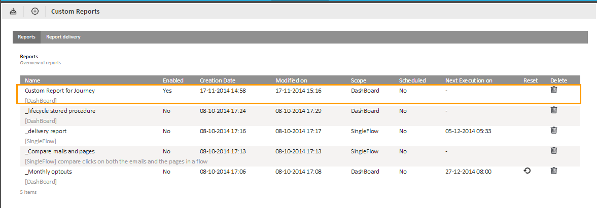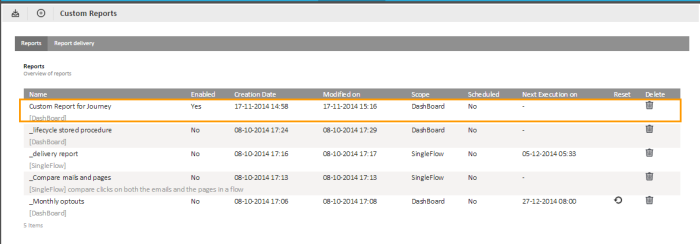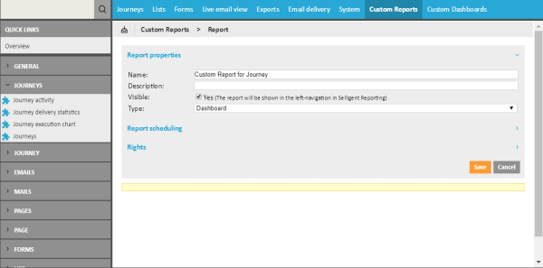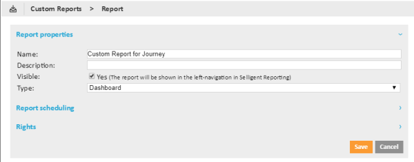 6. Press 'Save' when all components are added to the report. The custom report is now added to the list of reports.
