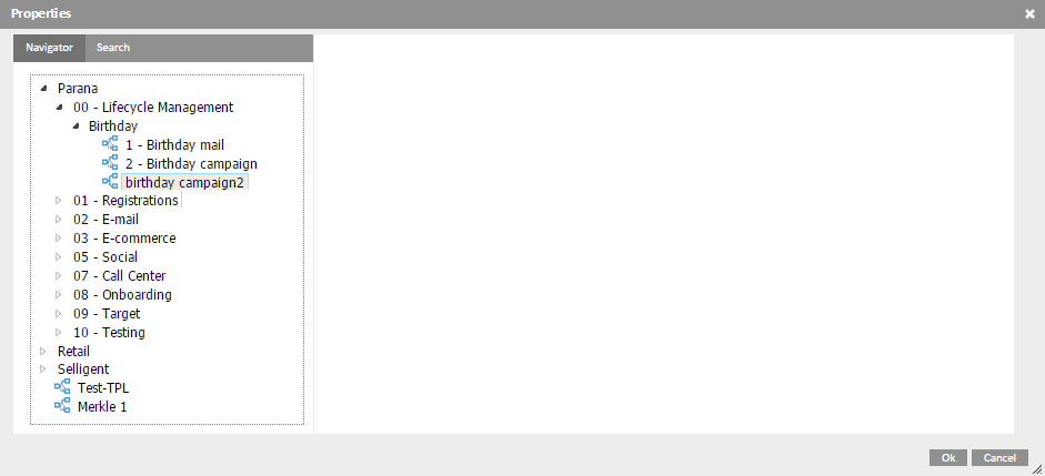 The tree on the left now holds all components available for selection and grouped per scope.