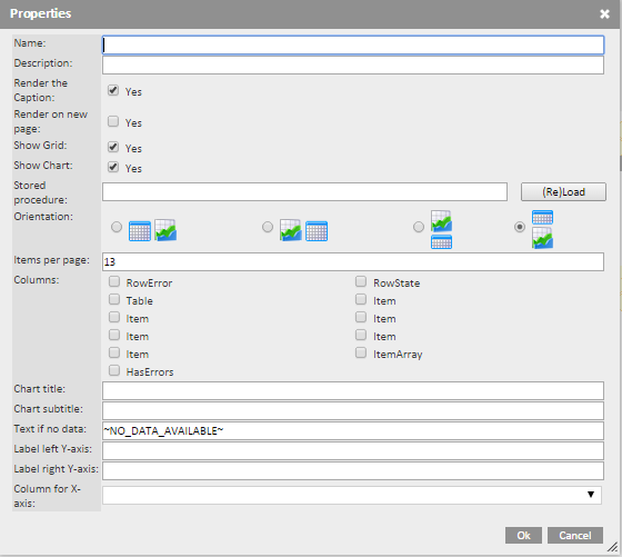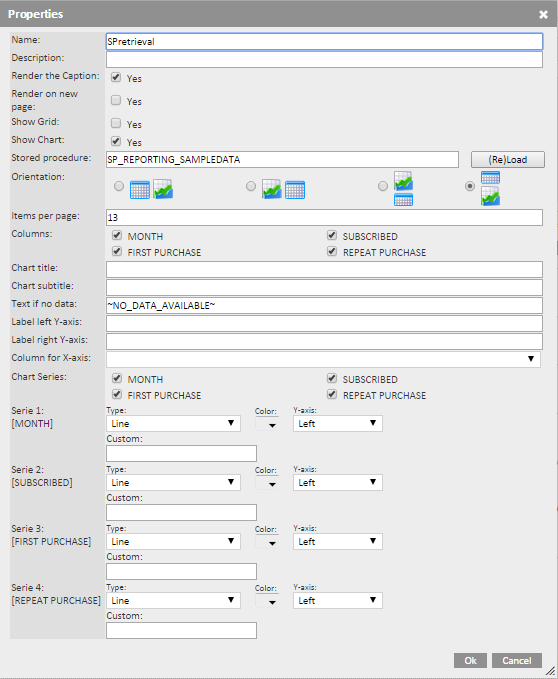 • Columns — Let's you select columns returned by the Stored Procedure to create chart series from.