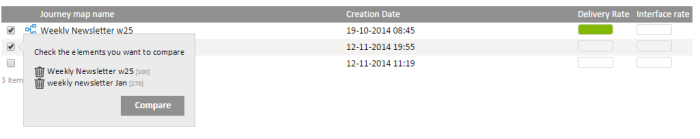 Use the checkbox in front of the journeys to select two or more and compare them: