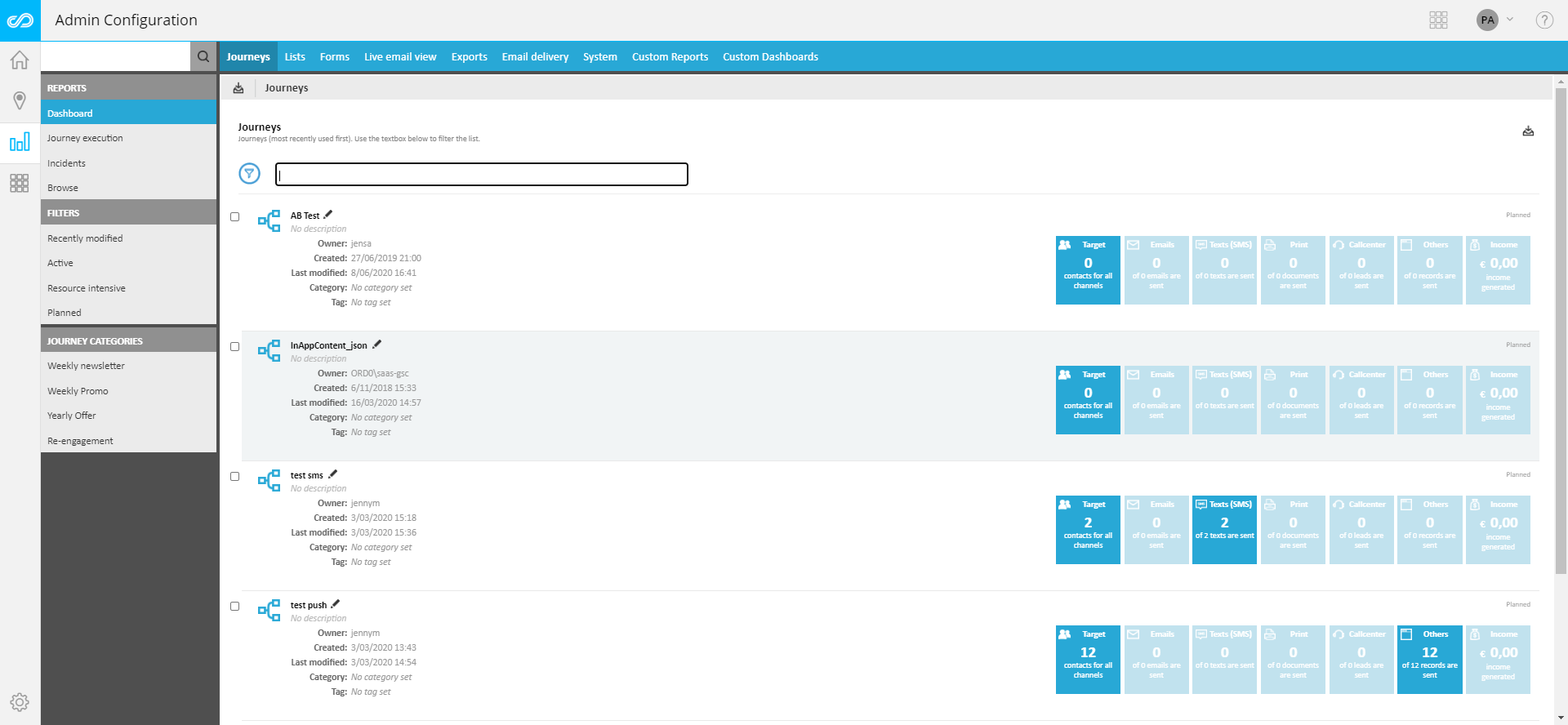 Use the Filter field at the top to narrow down the result, based on the name and description of the journey.