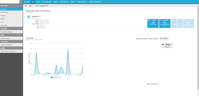 Per channel, interaction charts are available (the channels depend on the interfaces defined). The email channel has an additional chart: